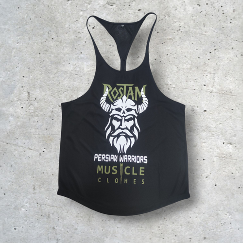 رکابی بدنسازی بند باریک مردانه حرفه ای مدل Persian warrior پارچه سوزنی تنفسی ضد تعریق رنگ مشکی با کیفیت۳۳۸٬۰۰۰ تومان