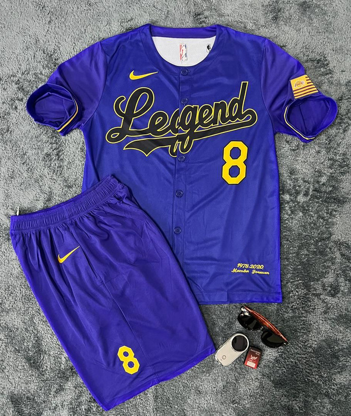 ست تیشرت و شلوارک بیسبالی مردانه مدل LAKERS ( وارداتی) یقه گرد پارچه سوپر سوزنی تنفسی ضد تعریق