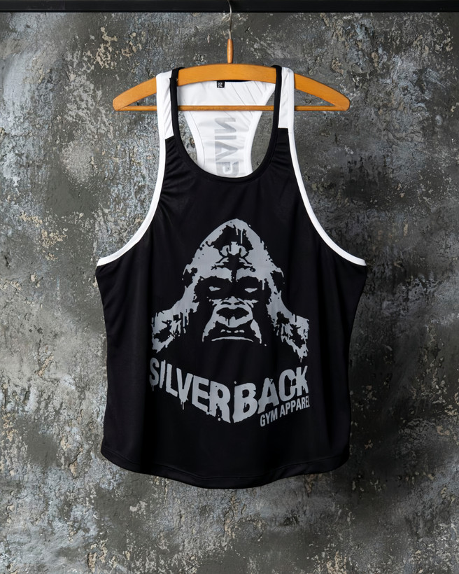 رکابی بدنسازی مردانه مدل SILVER BACK پارچه سوزنی تنفسی ضد تعریق با کیفیت تک رنگ