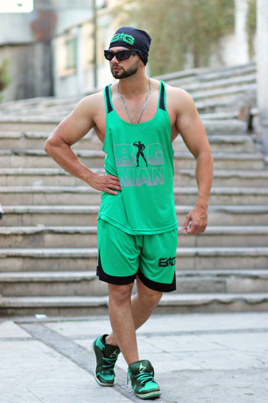 ست رکابی و شلوارک بدنسازی مردانه مدل BIG MAN پارچه تنفسی ضد تعریق با کیفیت در 4 رنگ جذاب