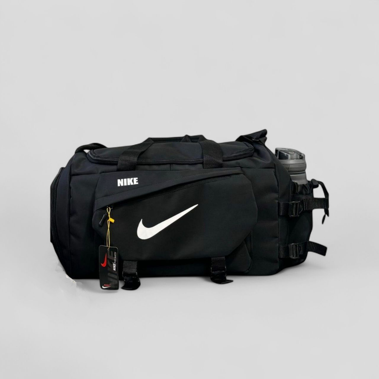ساک ورزشی مردانه و زنانه مدل NIKE پارچه دیبا ضد آب تک رنگ مشکی جا کفشی دار