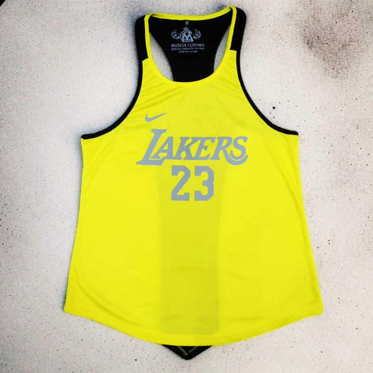 رکابی بدنسازی مردانه حرفه ای مدل LAKERS پارچه تنفسی ضد تعریق دورنگ
